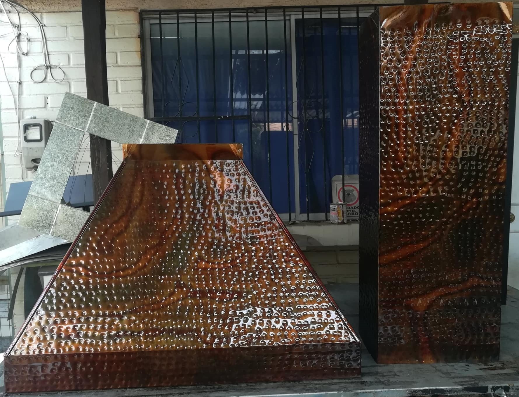 Canaletas, caballetes, forros en general, Campanas para quincho y cocina, ductos, codos, reducciones, gabinetes para calefont y muchos